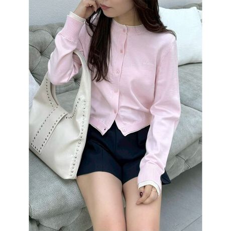 トレンドライクなカラーレイヤードが、1枚で完成するニットカーディガン。ベーシックなコンパクトシルエットながら、レイヤード風のディテールが程よくキャッチーでスタイリングの主役に。胸元には「LILY BROWN」の刺繍を施し、さりげないアクセントを加えました。デニムやプリーツスカートと合わせた洗練されたベーシックスタイルはもちろん、マイクロミニとの組み合わせでミニマルな着こなしもおすすめ。同素材のビスチェ(品番LWNT261136)をレイヤードすれば、よりハイクラスなスタイルが楽しめます。