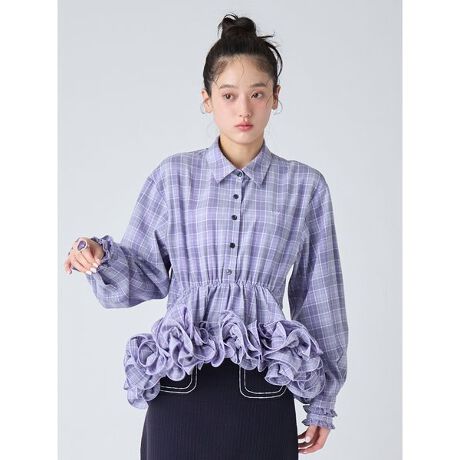 秋に人気だったフリルシャツが、ディテールをアップデートして再登場。ウエスト切り替え部分のゴム仕様による快適な着心地はそのままに、フリル端へ柔らかなテグスを入れることで、より立体的で動きのあるフリルモチーフを実現しました。袖口のカフスにはミニフリルを挟み込み、手元までフェミニンなニュアンスを演出。1枚で主役として着るのはもちろん、アウターやスウェットの裾からフリルをのぞかせるレイヤードスタイルもおすすめです。