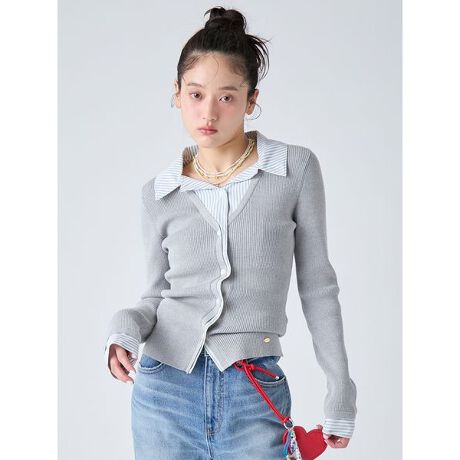 レイヤードデザインがキャッチーなシャツドッキングニット。トレンドのトラッドムードを残しつつ、開襟シャツ×ストライプ生地を組み合わせることで、一枚でこなれ感とモードな雰囲気を演出します。1枚でサマになるデザインで、デイリーのスタイリングをアップデートしてくれます。