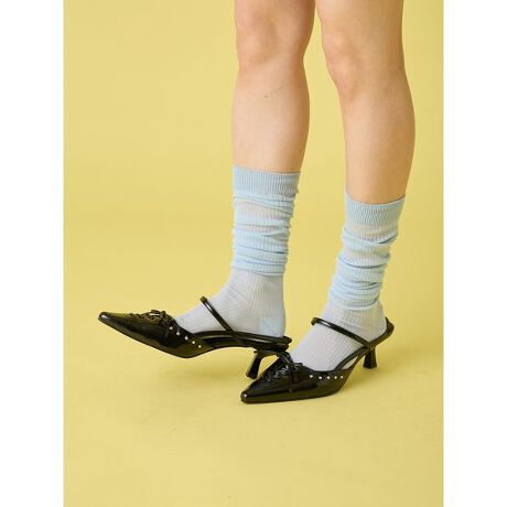 透け感と繊細な光沢が美しい、軽やかなシアーリブハイソックス。トレンド感のあるイエロー・ライトブルー・ブラウンの3色展開で、コーディネートの差し色として活躍します。膝上まで伸ばしてすっきり履くのはもちろん、くしゅっとルーズに下ろして抜け感を出すアレンジも◎ スタイリング次第で印象が変わる、汎用性の高いアイテムです。