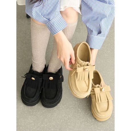 1825年創業の英国フットウェアブランド「Clarks Originals」から、伝統と革新を融合した新モデル「Meare Walla.(メア ワラ.)」が登場。上質なスエードアッパーとスマートなフォルムを生かしつつ、クラシカルな金ボタンをあしらったリボンとタッセルで、ローファーライクなLILY BROWN流カスタマイズを施しました。ハート型のFOBには「LILY BROWN」の箔押しを加え、特別感のある仕上がりに。軽量で柔軟性のあるEVAソールユニットは、快適な履き心地と耐久性の高いトラクションを実現。デイリーからおしゃれを楽しむ日まで、自由なスタイリングに寄り添う一足です。
