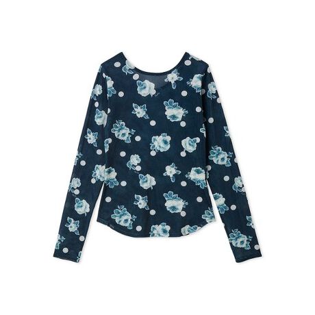 ぼかしフラワー柄にポルカドットを合わせた、トレンドライクなFURFURオリジナルの花柄をプリントしたトップス。起毛感のあるシアーベロアのカットソー生地を使用しており、一枚で着るのはもちろん、ワンピースの下に着たりレイヤードスタイルを楽しむのもおすすめです。