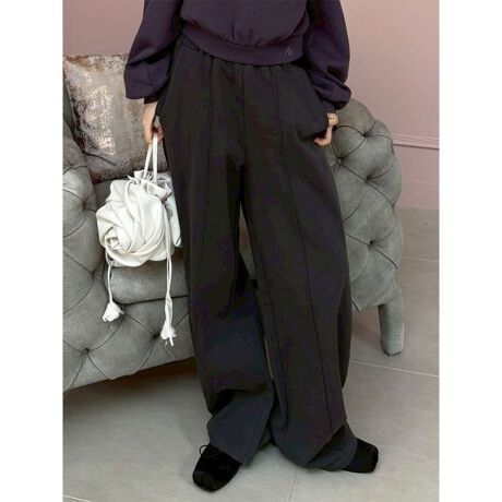 カジュアルなスウェット素材にピンタック加工を施すことで、リラックス感のなかに上品さをプラスした1本。付属のフェイクレザーベルトがスタイリングのアクセントになり、ウエストまわりをすっきり引き締めます。シルエットはほどよいボリュームを残しつつ、裾に向かって緩やかに細くすることで、生地がふんわり溜まるこなれた印象に。スウェット合わせはもちろん、シャツやジャケットとのMIXスタイルにもマッチします。