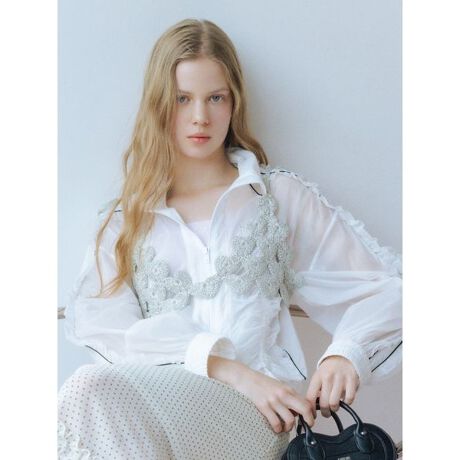 かぎ針編みで手作りした小さなハートモチーフをつなぎ合わせたニットブラレットです。一つ一つ丁寧に編まれたモチーフが、繊細で可愛らしい印象を与えます。シンプルなカットソーやシャツとの重ね着で、遊び心のあるスタイリングを楽しめます。肩紐と後ろの紐でサイズ調整が可能なため、フィット感を自由に調整できます。