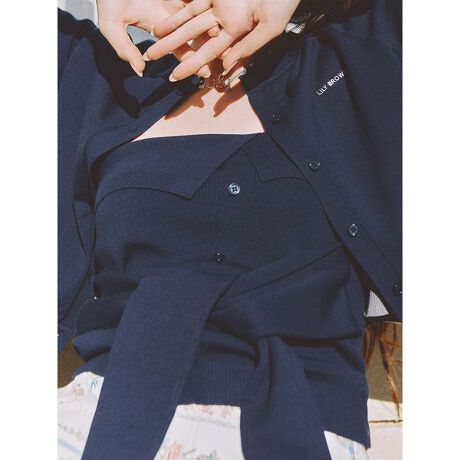 まるでカーディガンを巻き付けているようなレイヤードデザインが特徴のベアトップス。アシンメトリーにざっくりと巻いたようなディテールがこなれ感を演出し、イージーな着心地ながらトレンド感抜群の一枚です。バスト部分にはゴムを入れているため、1枚でもしっかりフィットして安心感のある着用が可能。バスト下の袖ディテールは結ぶ位置を調整でき、好みのシルエットを楽しめます。シアーインナーやシャツとのレイヤードはもちろん、同素材のカーディガン(LWND261135)を重ねれば、よりハイエンドなレイヤードスタイルが完成します。