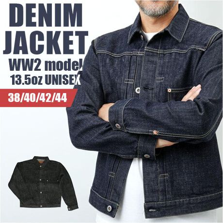 【武骨でクラシックなデニムジャケット】・13.5オンスのセルビッジデニムを使用した「デニムジャケット 大戦モデル ラベルあり」。【旧式織機で生まれる唯一無二の風合】旧式シャトル織機で織り上げられた生地。厚みと独特なムラ感、奥行きのある表情が魅力。【赤耳入りで細部までこだわりの一着】両端に赤耳を配した丁寧な縫製、細部までこだわりが光るディテール。【伝統的で存在感あるシルエット】ワーク・ミリタリー・ヴィンテージなど様々なスタイルに自然に溶け込むデザイン。【経年変化で深まる味わいと愛着】着込むほどに風合いが増す、長く楽しめるヴィンテージ感覚のデニムジャケット。【フロントプリーツと胸ポケット】フロントのダブルプリーツと胸ポケットで実用性とデザインを両立。レザーパッチもアクセント。【シンチバックでフィット感調節可能】背面シンチバックにより、体型や着こなしに合わせてフィット感を自在に調整。【打ち銅リベットで耐久性アップ】各所に打ち銅リベットを使用。長期間の着用にも耐えるしっかりとした作り。【ユニセックスで着られる1着】アメカジや古着とも相性抜群!カジュアルスタイルにマッチし、男女問わず楽しめるデザイン。