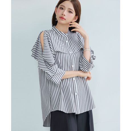 ヨークフリルストライプチュニックシャツ