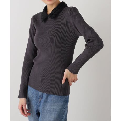 取り外し可能なレースカラーがポイントの2WAYニット。
