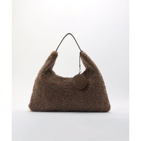 取っ手部分はフェイクレザーの切り替えデザインのため、きれいめコーディネートにもおすすめです。ミニポーチ付きで、コーデのポイントになります。