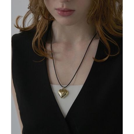 チャームカラーが選べるブラックコードネックレス。存在感のあるハートチャームが目を引き女性らしい雰囲気を引き立てる。豊富なカラー&サイズ展開であなたにぴったりのお気に入りが見つかる。70cmタイプは二重に巻いてお使いいただくのもおすすめ。※70cmのみアジャスター無しの仕様。※70cm着用画像は紐を二重巻きにして着用。