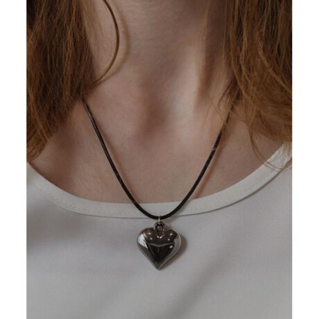 チャームカラーが選べるブラックコードネックレス。存在感のあるハートチャームが目を引き女性らしい雰囲気を引き立てる。豊富なカラー&サイズ展開であなたにぴったりのお気に入りが見つかる。70cmタイプは二重に巻いてお使いいただくのもおすすめ。※70cmのみアジャスター無しの仕様。※70cm着用画像は紐を二重巻きにして着用。
