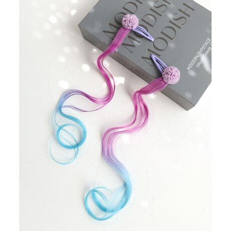 シンプルなポニーテールやツインテールも、このエクステをプラスすれば一瞬でSNS映えするスタイルに早変わり。学校やお出かけ、ちょっとしたお呼ばれなど、あらゆるシーンで周りの注目を集めるはず。お友達や姉妹で色違いを楽しむのもおすすめです。誕生日や入学のお祝い、ちょっとしたプレゼントにも最適。お子様から大人まで、幅広い世代の方にお楽しみいただける、新しい魅力を発見できるアイテムです。お取り扱いの際は、商品やパッケージなどに記載されている品質表示、アテンションタグ、ご使用上の注意事項などを必ずご確認下さい。本来の目的以外にはご使用にならないで下さい。カメラやモニターの性質により、画像と実物の色の違いがある場合がございますのでご理解願います。