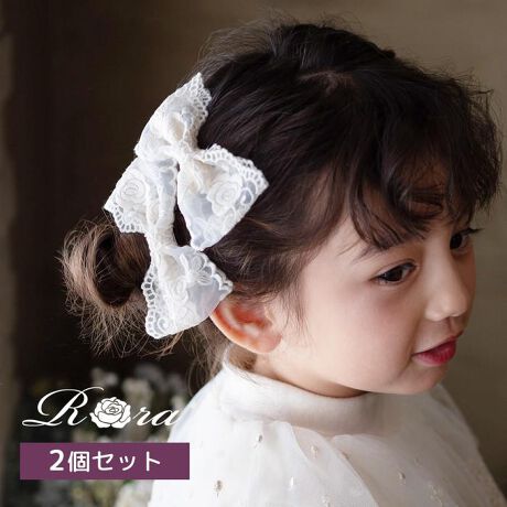 Rora ヘアクリップ キッズ 2個セット 通販 ナイリー リボン 大きめ レース ヘアークリップ 髪どめ 髪留め ヘアアクセサリー 髪飾り 子供 女の子 大人っぽい 卒園式 入学式 結婚式 発表会 可愛い おしゃれ かわいい 子ども用アクセサリー キッズファッション