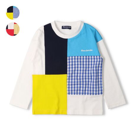 ギンガムチェックや無地のカラフルな配色切替がポイント!1枚でインパクトがある長袖Tシャツ、ロンT。【アイテム】トップス カジュアル お洒落 オシャレ かっこいい かわいい 可愛い 普段着 デイリーウェア お出かけ着 お外着 お外遊び着 子ども服 こども服 男児 男の子 ボーイズ キッズ ベビーサイズ トドラーサイズ 幼稚園 保育園 小学校 通園 通学 小学生 2026年春物新作 丸高衣料 ロングスリーブ 長袖 ホワイト 白色 レッド 赤色 ムージョンジョン コットン100% 綿100%