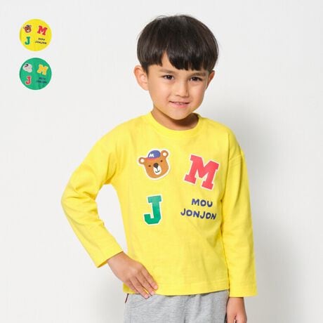 イエローにはくま、グリーンにはぞうのワッペン付き。ブランドロゴとくま、ぞうのワッペンがムージョンジョンらしくて可愛い長袖Tシャツ、ロンT。【アイテム】トップス カジュアル お洒落 オシャレ かっこいい かわいい 可愛い 普段着 デイリーウェア お出かけ着 お外着 お外遊び着 子ども服 こども服 男児 男の子 ボーイズ キッズ ベビーサイズ トドラーサイズ 幼稚園 保育園 小学校 通園 通学 小学生 2026年春物新作 丸高衣料 ロングスリーブ 長袖 イエロー グリーン 緑色 黄色 クマ ゾウ アニマル 動物 コットン100% 綿100%