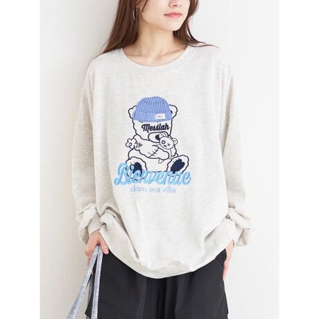 ニット帽をかぶったクマのデザインがキュートなアクセントをプラスするプルオーバー