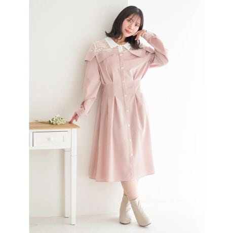 レースシャツをレイヤードしたようなドッキングデザインのオフショルワンピース