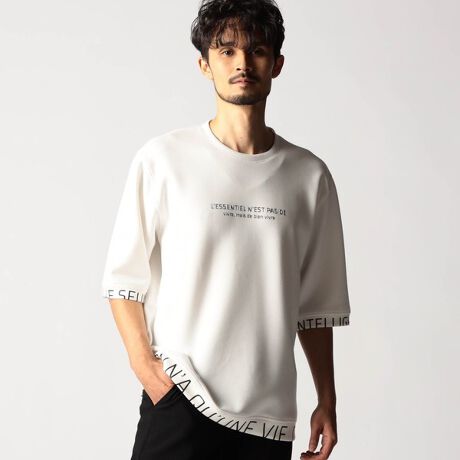 ややゆったりとしたリラックスシルエットの5分袖プルオ−バ−。胸元のメタルジェルプリントと裾、袖口端に巻き込んだロゴプリントがデザインポイントです。単品としては勿論、ブルゾンのインナ−としてもスタイリング映えする一着。シルエットや素材感によりストレス無く着用出来る着心地の良いアイテムです。更には軽さがある為、綺麗なシルエットを作り出します。