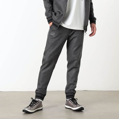 動きやすさと綺麗なシルエットを追及したシンプル且つ機能的なデザインのテックパンツ。アクセントのメタルジェル、厚盛りラバープリントでオリジナリティを高めています。裾にはリブを使用し、配色ラインでスポーティなギミックをプラス。ウエストドローコードとベルトループを備え、スポーツシーンからタウンユースまで、様々なシチュエーションで活躍するアイテムです。