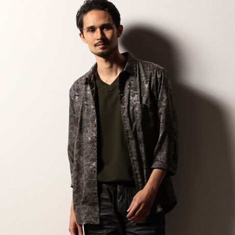 フレンチフロント仕様ですっきりさせたデザインシャツ。