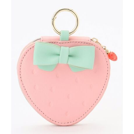 いちごモチーフがかわいい、カラビナ付きのミニポーチ