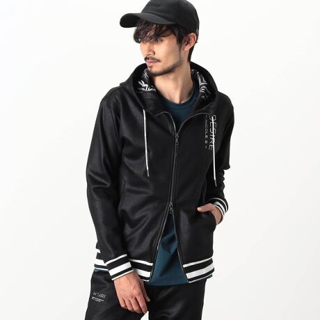動きやすさを追及したシンプル且つ機能的なデザインのスタンドフルジップパーカ。アクセントの箔転写プリントファスナー、メタルジェルプリント、厚盛りラバーワッペンでオリジナリティを高めています。裾にはリブを使用し、配色ラインでスポーティなギミックをプラス。スポーツシーンからタウンユースまで、様々なシチュエーションで活躍するアイテムです。