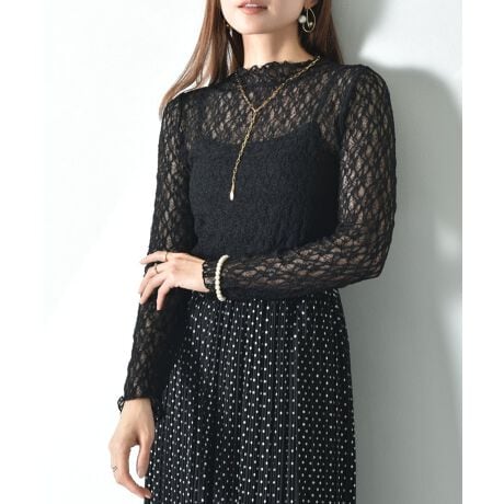 体にフィットしすぎないサイジングで、さらりと着ていただけます。シンプルなデザインながら、こだわりのレース素材でこなれ感をプラス。優しく首に沿う控えめなハイネックは華奢見え効果は抜群です◎着心地も良く、さらりとした肌触りでデイリーにも活躍する1枚です。