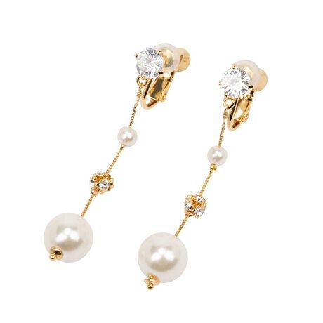 ジルコニア・ガラス・パールの素材ミックスが華やかなフリンジ型イヤリング。