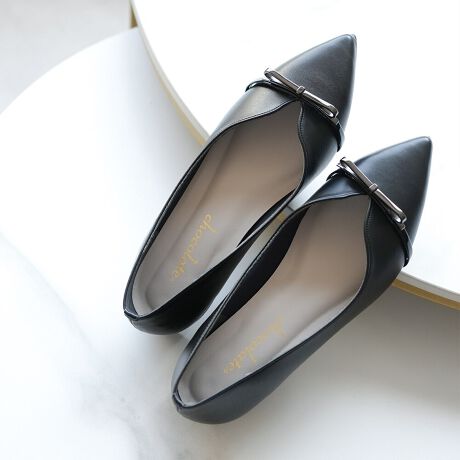 日本製 シューファンタジー Shoe Fantasy デザインカット リボンバックルパンプス