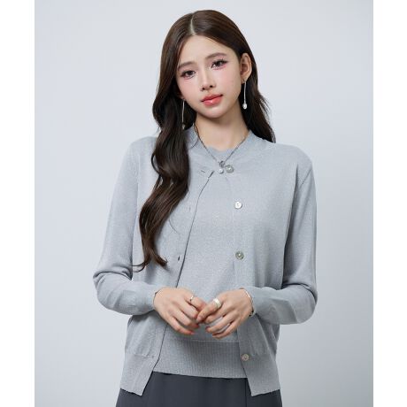 さりげなくキラッと光る貝ボタン仕様です。シンプルなニットに女性らしさをプラスします。