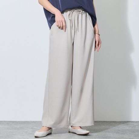 脇に折り返しタックを入れたイージーパンツ。