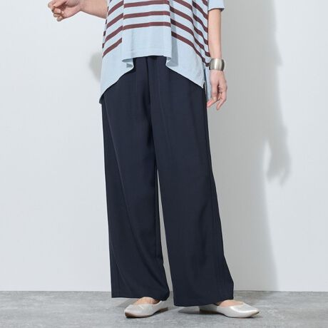 脇に折り返しタックを入れたイージーパンツ。