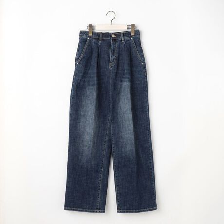フロントに2本のタックが入ったワイドシルエットのデニムパンツ。
