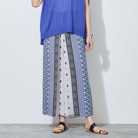 幾重にも連なった幾何柄が縦のラインを強調し、足長見え効果も◎