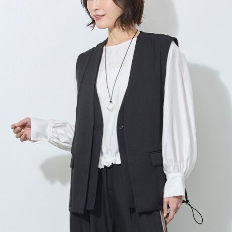 羽織るだけでコディネートを格上げしてくれるデザインベスト。