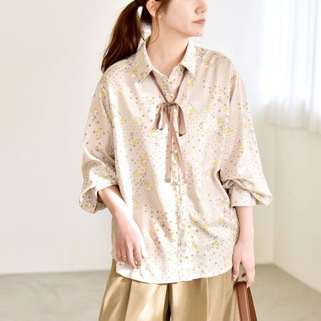 《予約》quaranciel:〈洗濯機可能〉ドット フラワープリント リボンタイ シャツ