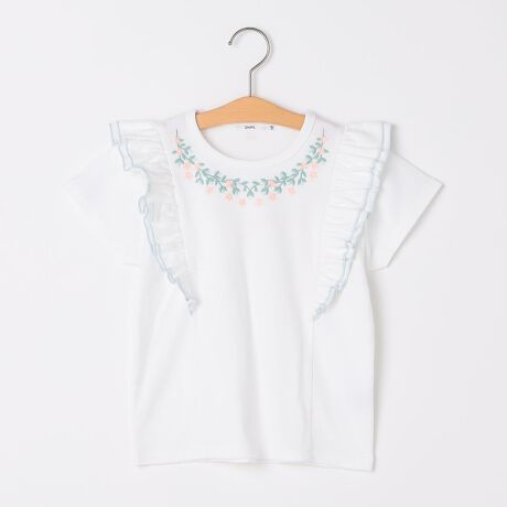 肩部分には流れるようなフリル、刺繍カラーと同色のメロウステッチを施し、華やかさをプラスしました。