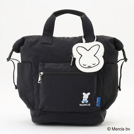 裏地にはナインチェとファミリーが描かれた総柄を使用。取り外し可能なフェイス型ポーチ付き。