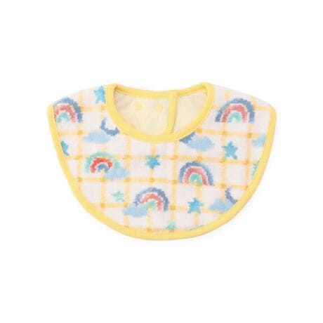 ソフトな肌触りが心地よい『トゥインクルトゥインクル』のスタイです。首の後ろでスナップボタンを留めるタイプで、2段階に調節可能。ワンタッチで簡単に着脱できて、お子さまへの負担が最小限なのもうれしいポイント。靴下(TWT-260513)やマルチケース(TWT-260503)などとセットで、出産祝いの贈り物にもおすすめです。