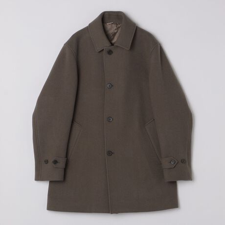 セットインスリーブにシングルブレステッドのステンカラー型と飽きの来ないデザインに仕上がっております。