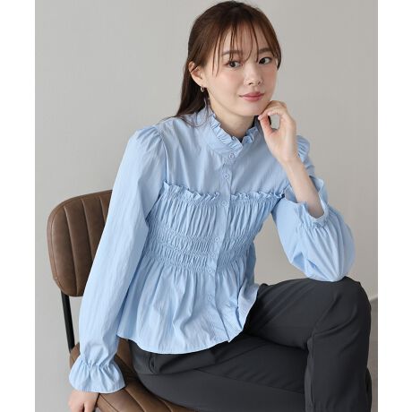 トレンドライクなペプラムデザインのシャーリングブラウス