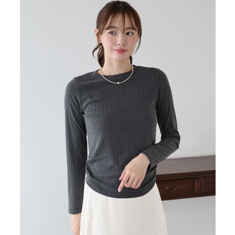 ほどよい透け感が旬なニュアンスを演出する、シアーリブカットソー。