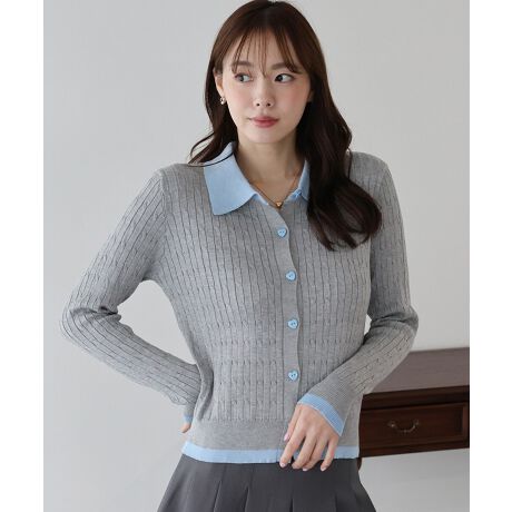 クラシカルなポロカラーに、配色ラインのバイカラーを効かせたトレンド感溢れるカーディガン。