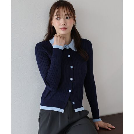クラシカルなポロカラーに、配色ラインのバイカラーを効かせたトレンド感溢れるカーディガン。