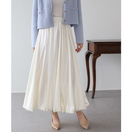 高級感のあるサテン×ふんわりと広がるバルーンシルエットが目を惹くロングスカート