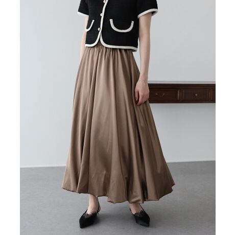 高級感のあるサテン×ふんわりと広がるバルーンシルエットが目を惹くロングスカート