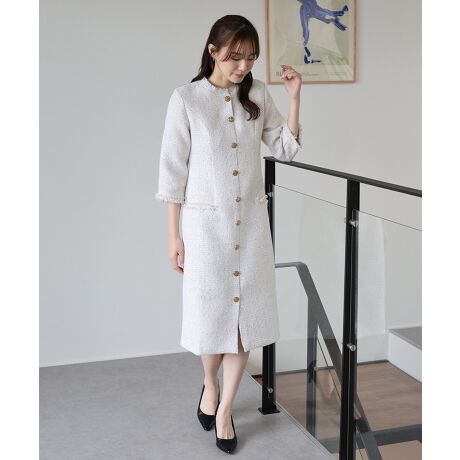 特別な日もお出かけもOKなキチンと見えするラメツイードフリンジワンピース