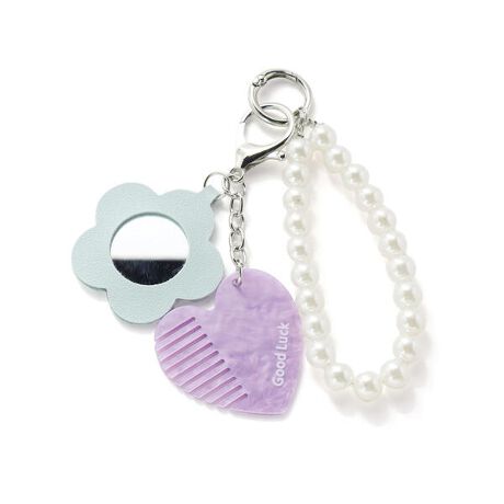 持ち歩きに便利なミラーとコームがセットになったストラップ。