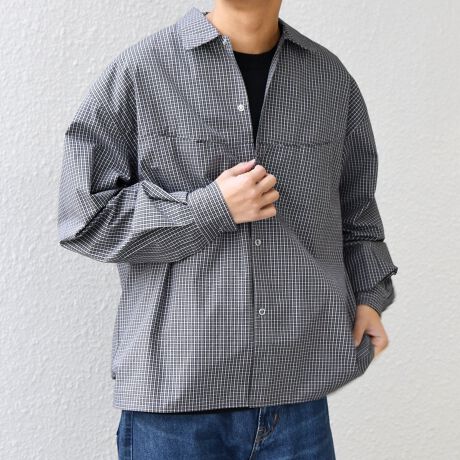 細かなチェック柄を採用した、カジュアルな印象のコーチシャツ。