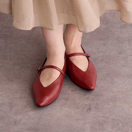 深めVカットのメリージェーンパンプス。